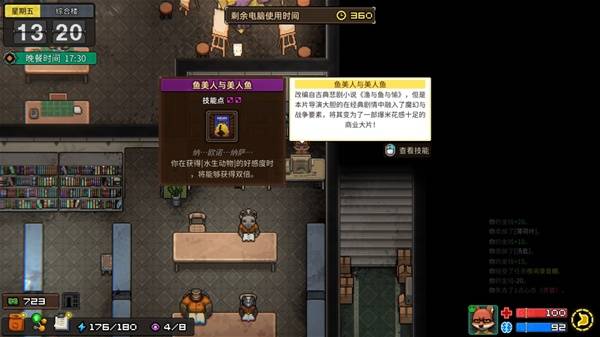 14.第二天去综合室的电脑处完成观看之前警卫室拿到的《美人鱼》,获得水生好感技能。