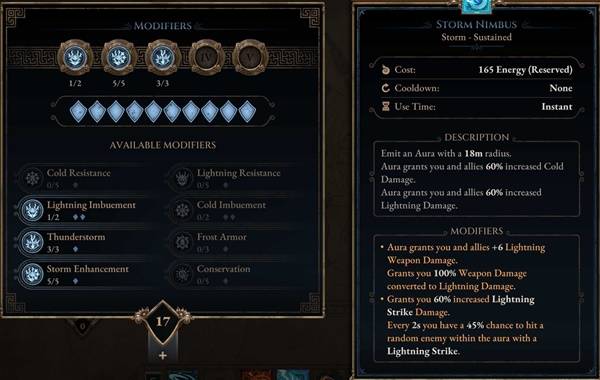 风暴光环:优先2点解锁转电伤,之后多余点数加满电伤加成和闪电打击伤害加成。