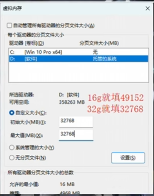 方法二:电脑搜索栏搜索一下高级系统设置-高级-性能,在性能这一栏点击设置点击高级进入虚拟内存设置,数据调整如图所示: