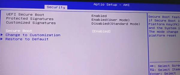 这个secureboot(安全启动)需要在bios里的uefi模式下启动。