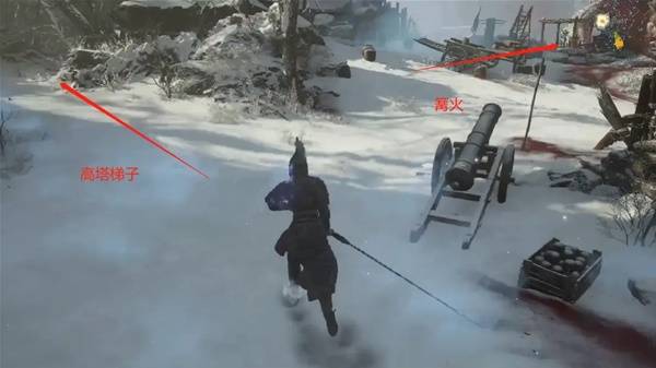 第一个高塔要到一片雷区,就是有爆炸弓这里,梯子就在一个豁口处