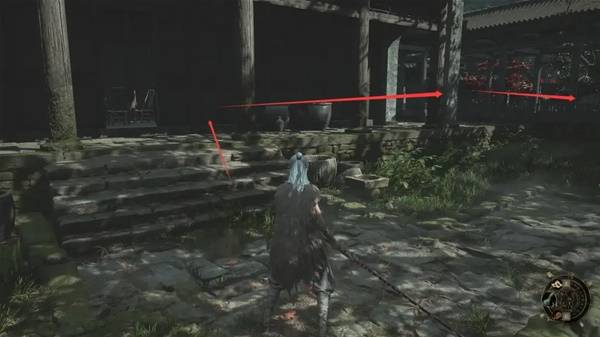右边是个假的门,没用,左边是个亭子和箱子,第一次来这会遇到心魔