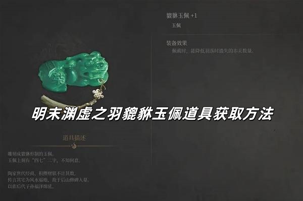 明末渊虚之羽游戏中有非常多的道具,每个道具都有不同的效果,还可以配合功法组合成各种流派玩法,貔貅玉佩是游戏中的一个道具,很多玩家都不知道该道具如何获得,下面小编为大家带来详细的获取方法,还不知道的玩家们赶紧来看看吧。
